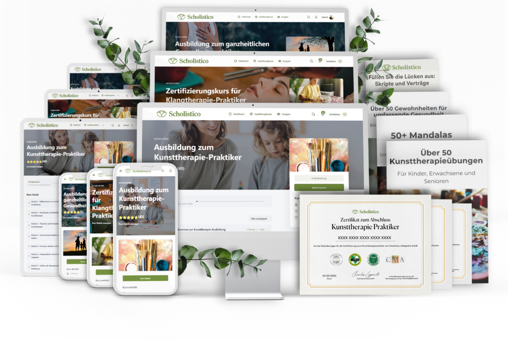 Das Herzstück jedes Pakets ist die Zertifizierung zum ganzheitlichen Gesundheitspraktiker, der Grundstein der integrativen Arbeit. Dieser Kurs gibt Ihnen den grundlegenden Rahmen, den Sie benötigen, um verschiedene Heilmethoden in einer zusammenhängenden, ethischen Praxis zu kombinieren. Jede weitere Modalität, die Sie hinzufügen, vertieft Ihre Fähigkeiten, erweitert Ihr Angebot und stärkt die Ergebnisse Ihrer Klienten.