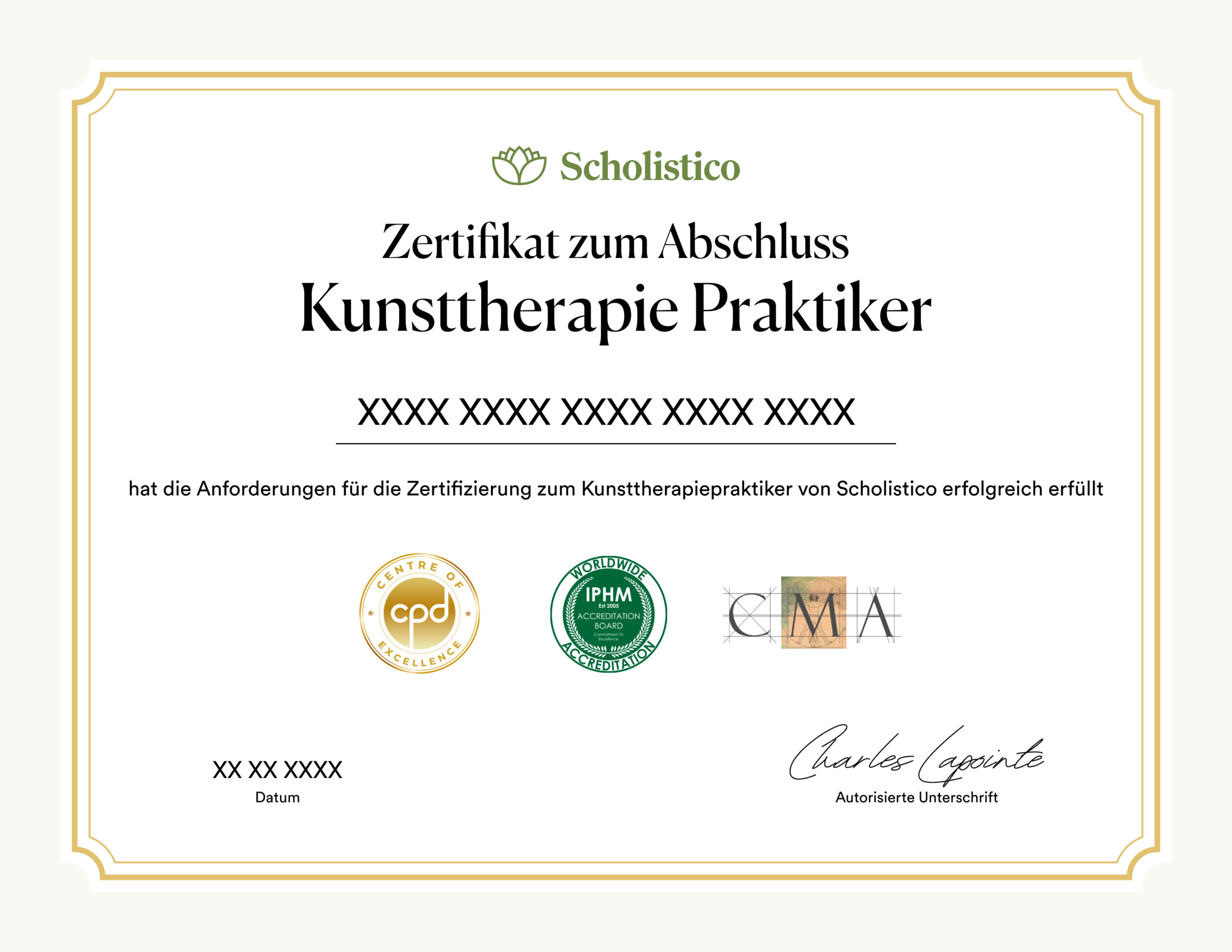Offizielles Zertifikat für die Ausbildung zum Kunsttherapiepraktiker